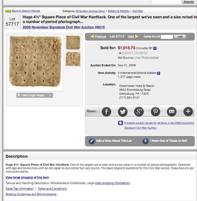 they sold a “huge” piece of Civil War hardtack for a little over a thousand