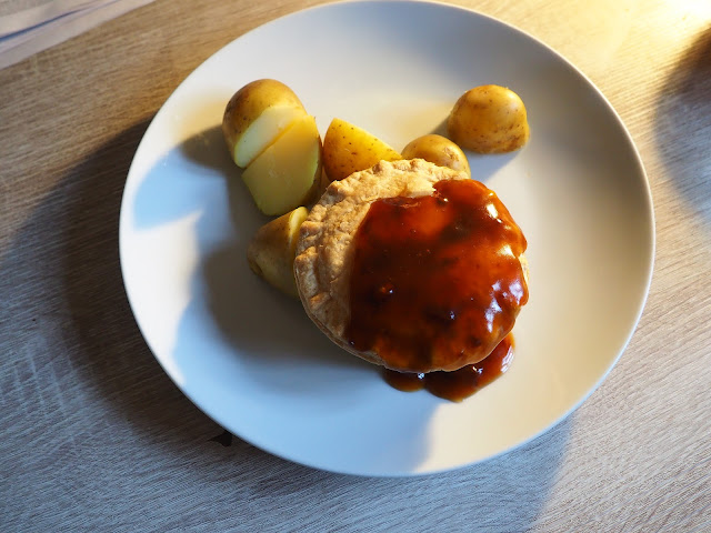 Then I saw that the Co-op was also selling brisket joints and I had some notion that salt beef is made from brisket so I bought some of that. Then I got home and looked up recipes and discovered that a good salt beef is brined for 10 days, and that was just too much delayed gratification, so we made a brisket hotpot which certainly involves a certain amount of delay since you’re supposed to cook it for four hours but we decided we could live with that. The result looked like this: